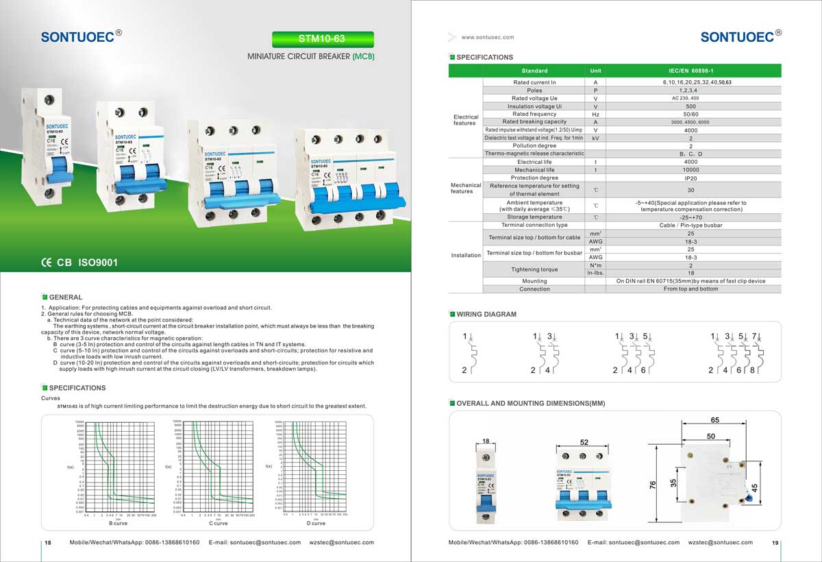 SONTUOEC ir viens no Ķīnas piegādātājiem/ražotājiem, kas specializējas dažādu mazu elektroierīču ražošanā STM10-63 sērijas miniatūrajiem automātiskajiem slēdžiem ar augstu pārrāvumu, ir uzlabota struktūra, uzticama veiktspēja, augsta pārrāvuma jauda, elegants izskats, un tā apvalks un detaļas ir izgatavotas no materiāla ar triecienizturību, spēcīgu liesmas slāpētāju. Tas ir piemērots barošanas sistēmai ar 50 vai 60 frekvencēm, Ue 400 V un zemāku, Ui 63A un zemāku. Tas atbilst standartiem IEC60898.1 un GB10963.1.