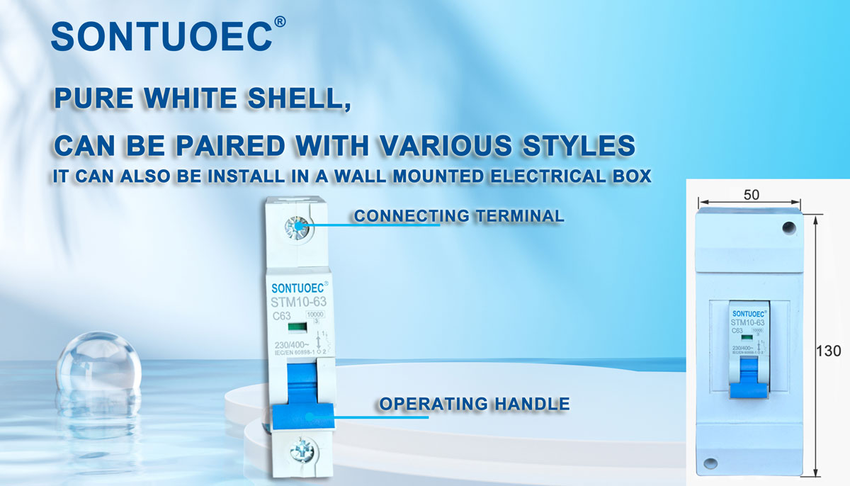 SONTUOEC ir viens no Ķīnas piegādātājiem/ražotājiem, kas specializējas dažādu mazu elektroierīču ražošanā STM10-63 sērijas miniatūrajiem automātiskajiem slēdžiem ar augstu pārrāvumu, ir uzlabota struktūra, uzticama veiktspēja, augsta pārrāvuma jauda, elegants izskats, un tā apvalks un detaļas ir izgatavotas no materiāla ar triecienizturību, spēcīgu liesmas slāpētāju. Tas ir piemērots barošanas sistēmai ar 50 vai 60 frekvenci, Ue 400V un zemāku, Ui 63A un zemāku. To galvenokārt izmanto biroju ēkās, dzīvesvietās, apgaismojumam, elektroenerģijas sadalei un aprīkojuma aizsardzībai pret pārslodzi un īssavienojumu. Parasti to var izmantot arī kā nebiežu energosistēmas pārsūtīšanu. Tas atbilst standartiem IEC60898.1 un GB10963.1
