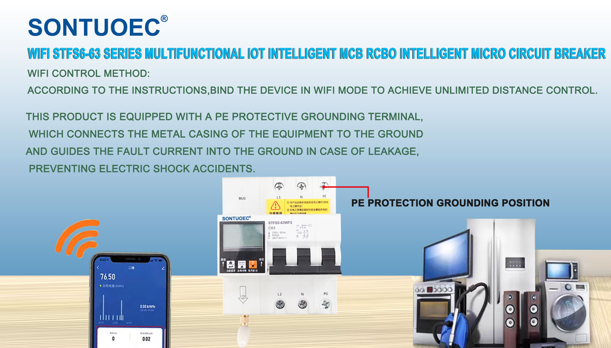 Produkts ir aprīkots ar PE aizsargājošu zemējuma termināli, kas savieno aprīkojuma metāla apvalku ar zemi un noplūdes gadījumā virza bojājuma strāvu zemē, novēršot elektrisko šoka negadījumus. Ja plānojat uzlabot savu elektrisko sistēmu, izveidot viedu māju vai iegādāties uzticamu enerģijas sadales aprīkojumu komerciālām telpām, piemēram, dzīvojamām mājām, mazām komerciālām teritorijām, rūpniecības vadības sistēmām utt., Jūs varat apsvērt iespēju iegādāties Sontuoec WiFi viedo ķēdes pārtraucējus.
